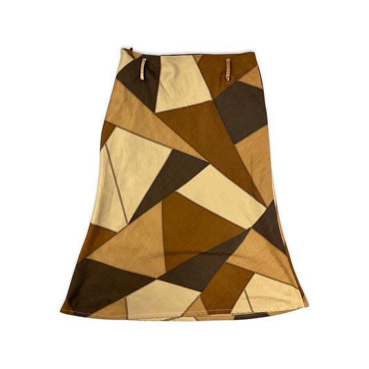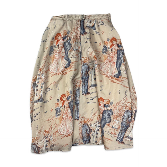 Vintage Cream Brown Novelty Graphic Print A-line Skirt 6 8