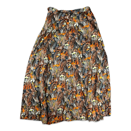 Vintage Black Brown & Orange Botanical Print Midi Skirt 12 14