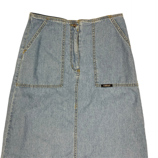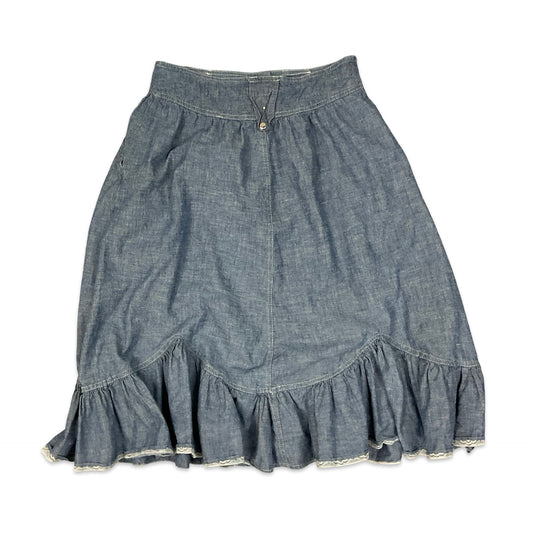 Vintage Blue Chambray Pleated Midi Skirt 10