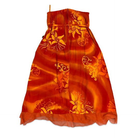 Vintage Orange Floral Print Boho Maxi Skirt 8 10 12 14