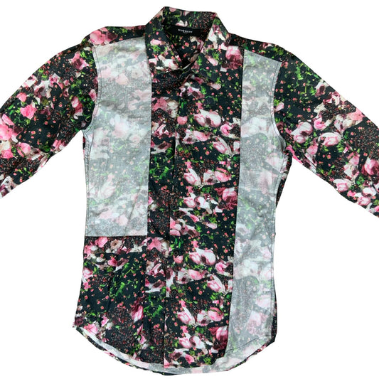 VTG 2014 'GIVENCHY' BLACK PINK FLORAL ROSE FAUX PATCHWORK LONG SLEEVED SHIRT S