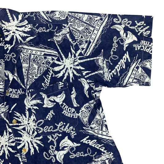 'CHAPS' RALPH LAUREN MEN'S BLUE WHITE SEA LIFE TROPICAL SHORT SLEEVED SHIRT XL