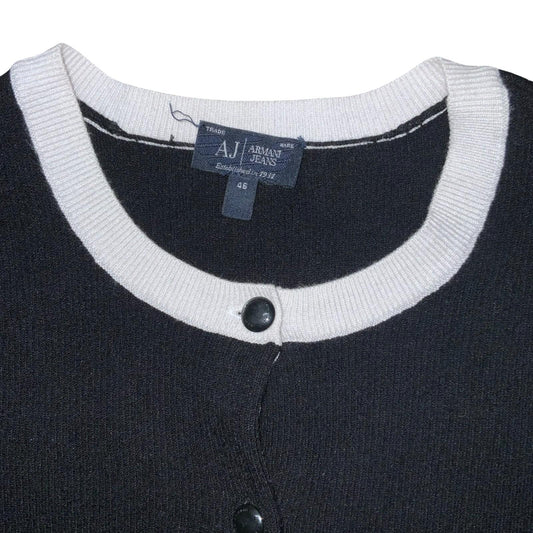 VTG 'Armani Jeans' Black White Monotone Snap Button Casual Cardigan UK 8/10