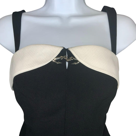 VTG 90s RARE 'Thierry Mugler' Black White Mini Anchor Sailor Bodycon Dress UK 8