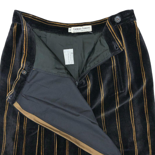 Vtg 'Giorgio Armani' Black Gold Striped Cotton Velvet Pleated Midi Skirt UK 10