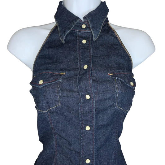 Vtg 90s Y2K 'Miss Sixty' Urban-Renewal Dark Blue Denim Belted Dress XS UK 4/6