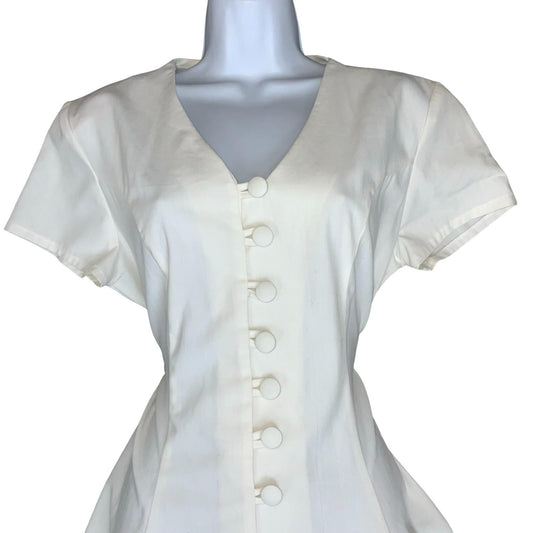 Vtg 90s Clock House White Button-Up A-line Mini Skater Party Dress M UK 12