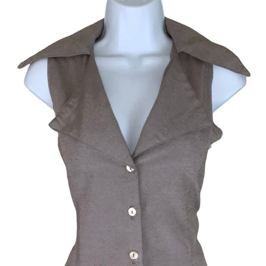 Vintage 80s 90s Beige Brown Sleeveless Collared Aline Maxi Dress 10 12