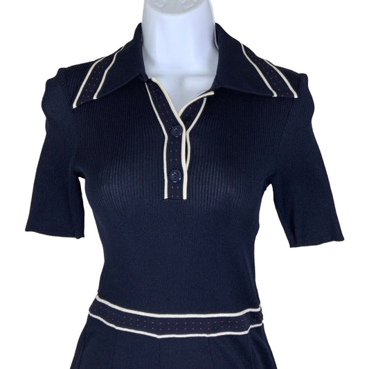 Vintage ‘Les Carnards’ Navy Blue White Red Aline Midi Dress 4 6