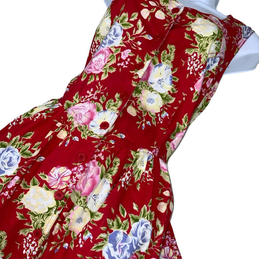 Vintage 80s 90s 'Citilites' Red Floral Aline Pockets Sleeveless Midi Dress 14 16 18