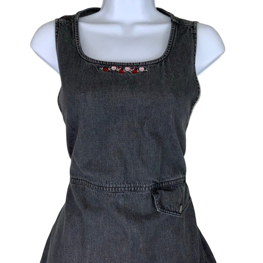 Vintage 90s ‘Erica & Co’ Black Denim Embroidered Maxi Summer Dress 12 14