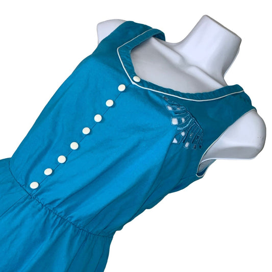 Vintage 80s Blue Sleeveless Aline Midi Summer Dress 6 8 10