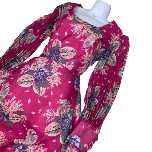 Vintage 70s 80s ‘Trevira’ Pink White Purple Floral Aline Layered Swing Dress 14