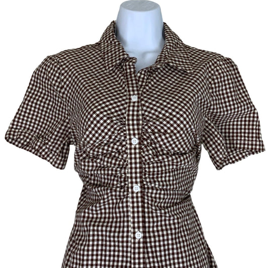 Vintage 90s Y2K Brown White Check Maxi Summer Dress 10 12