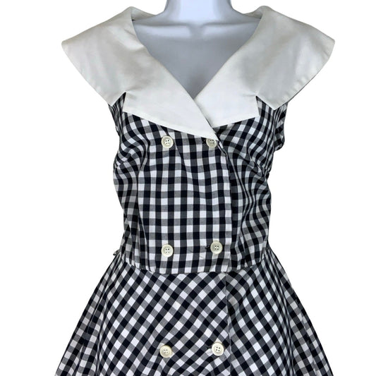 Vintage 80s Black White Check Pockets Sailor Aline Midi Swing Dress 12 14 16