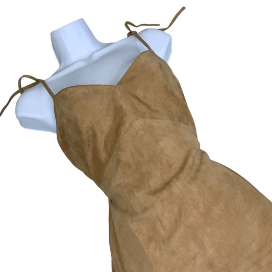 Vintage 90s Y2k ‘Air Boat’ Beige Suede Strappy Mini Dress 10 12