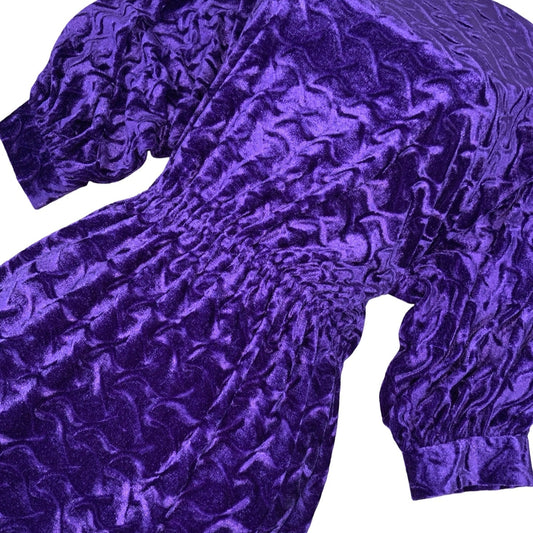Vintage 80s Purple Textured Velvet A-line Dress 10 12