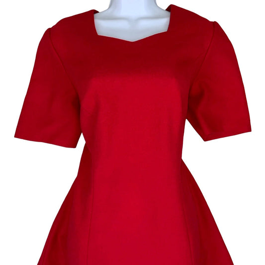 Vintage Red Short Sleeved Midi Dress 10 12 14