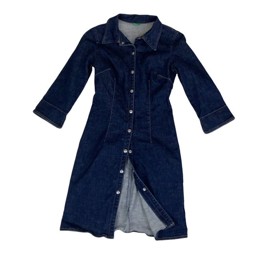 Vintage 90s Y2K United Colors of Benetton Button-Up Midi Denim Shirt Dress 4 6 XS