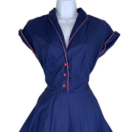 Vintage 80s Blue White Red Aline Midi Swing Dress 10 12