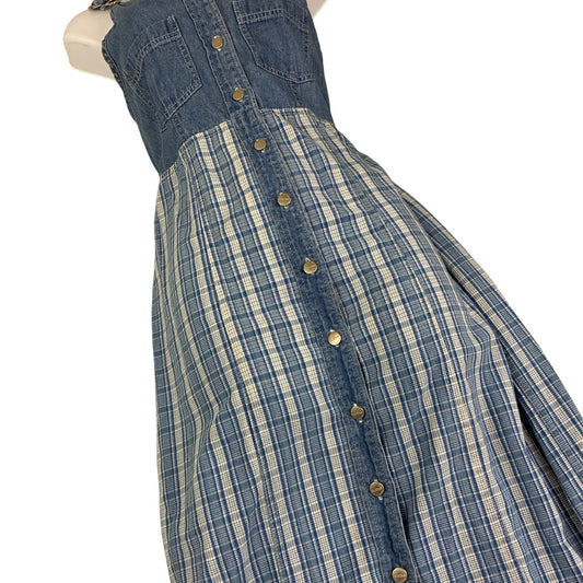 Vintage 90s Y2K ‘Broadway Industries’ Dungaree Tartan Midi Shirt Summer Dress 8