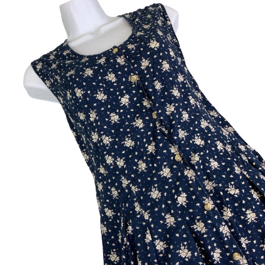 Vintage 90s Y2k ‘H&M Hennes’ Blue White Floral Sleeveless Summer Maxi Dress 12 14 16