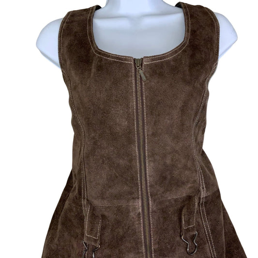 90s Y2K ‘Rocky’ Original Wear Brown Suede Sleeveless Mini Dress 10 12