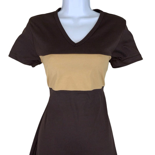 Vintage 90s Y2K ‘New Look’ Brown Beige V-Neck Maxi Dress 8 10