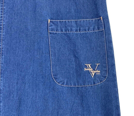 VTG 90s VALENTINO BLUE DENIM PINAFORE DUNGAREE POCKETS DRESS SIZE S