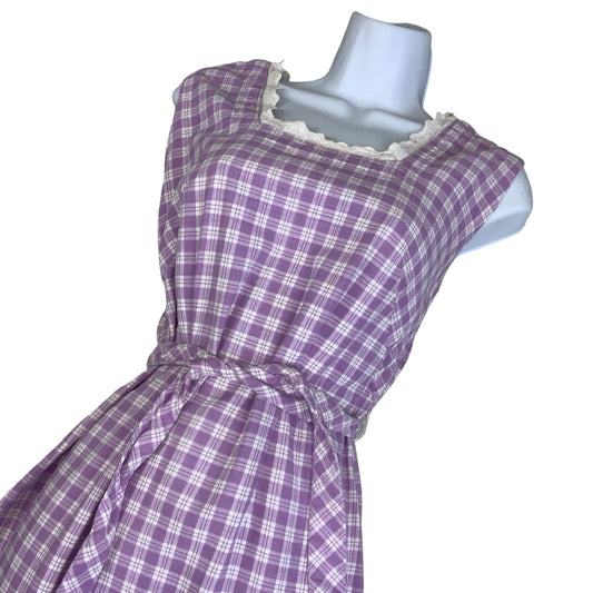 Vintage 70s 80s Purple White Cottagecore Gingham Plaid Check Prairie Midi Dress