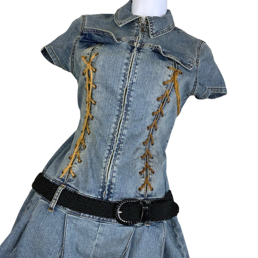 Vintage 2005 ‘Firhine Denim’ Blue Drop Waist Mini Denim Dress 10