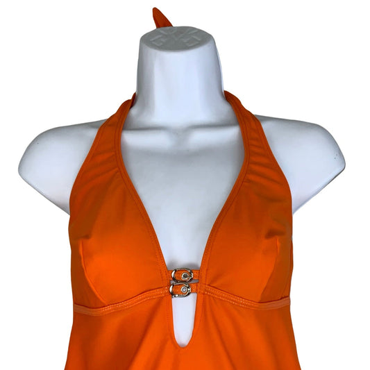 Vintage Y2k ‘l'auraBLU’ Orange Lycra Halter Neck Midi Dress 8 10