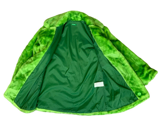 VTG 90s 'UNITED COLORS OF BENETTON' LIME GREEN FAUX FUR LINED STATEMENT JACKET S