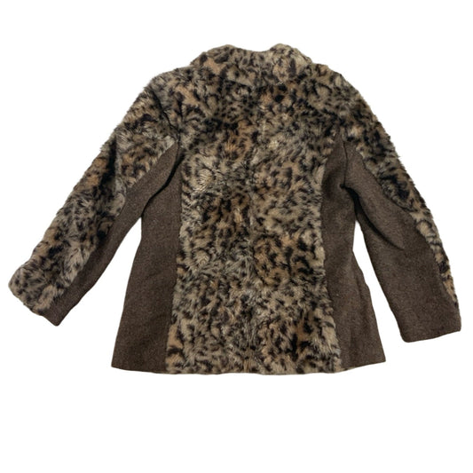 Vintage Brown Print Faux Fur Leather Coat 12 14 16