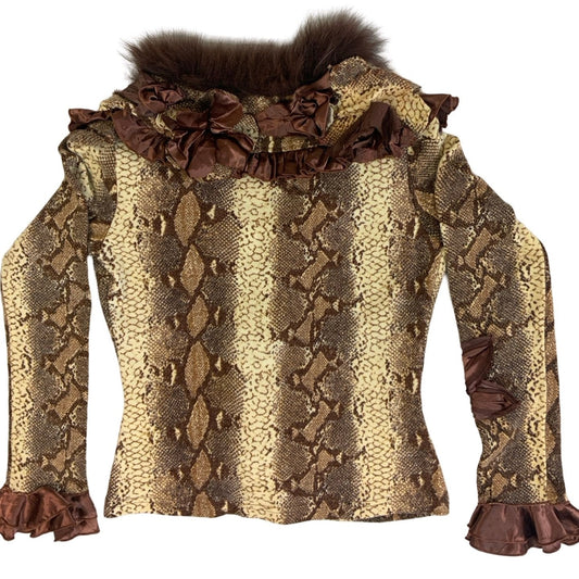 Vintage 90s Y2K Snakeskin Print Faux Fur Cardigan XS 8