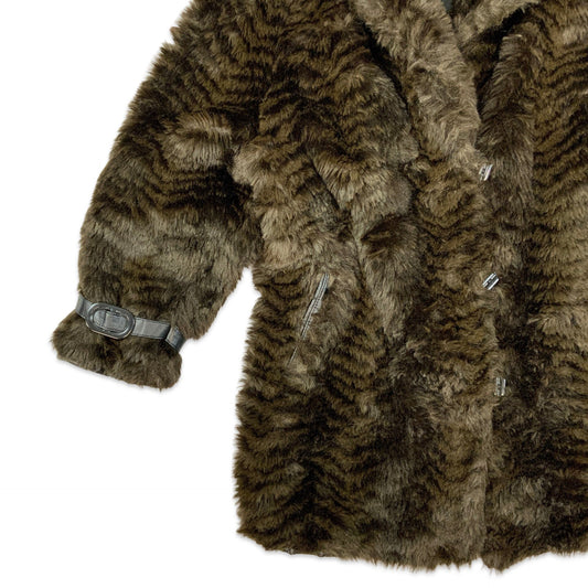 Vintage Y2K Animal Print Faux Fur Coat 8 10 12