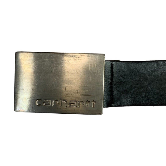 Vintage 00s Black Leather Carharrt Engraved Buckle Gorpcore Branded Belt M/L