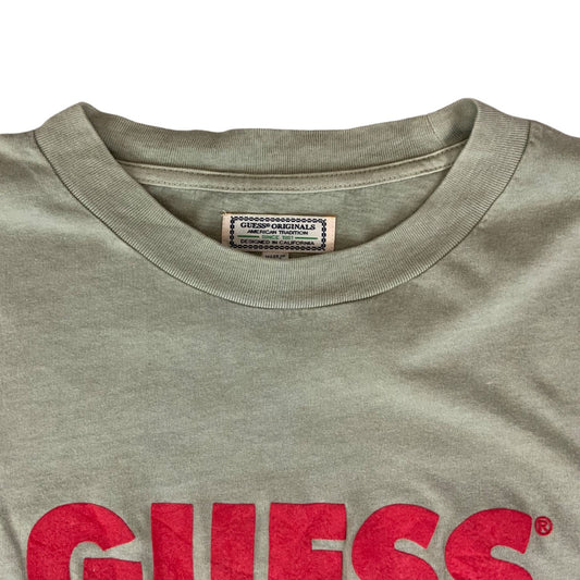 Vintage 90s Light Khaki Green Guess Originals Spell-Out Logo Graphic Tee XL