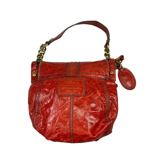 Vintage 90s Red Gold Fossil Leather Shoulder Handbag