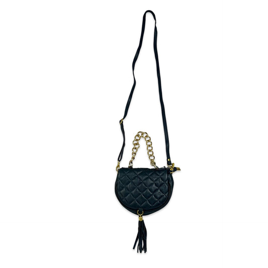 Vtg 90s Black Gold Chain Slouch-Style Tassel Hobo Crossbody Shoulder Handbag