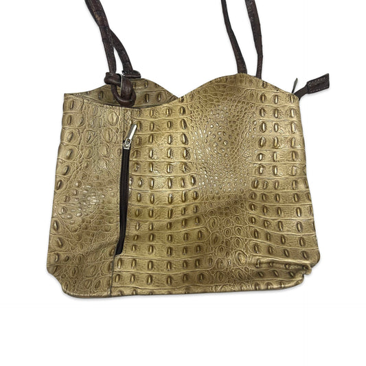Vtg Beige Leather Patchwork Croc Embossed Casual Crossbody Hobo Handbag