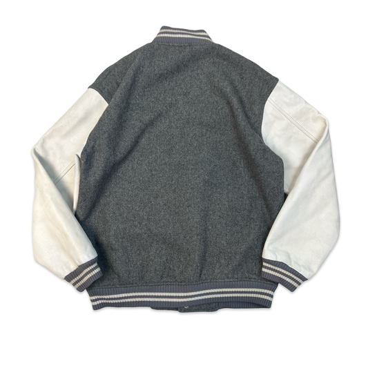 Vintage Grey Two-tone Leather & Wool Varsity Jacket S
