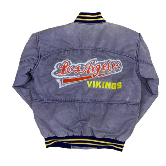 Vintage 90s Los Angeles Vikings Purple Quilted Bomber Varsity Jacket L XL