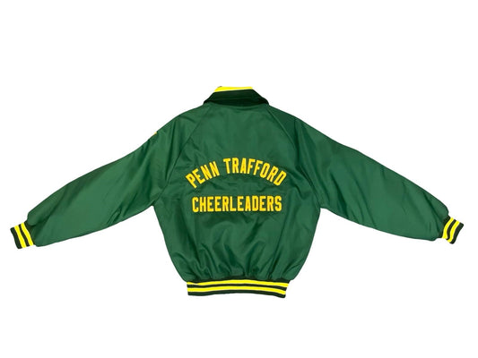 Vtg USA Green & Yellow Penn Trafford Cheerleaders Silky Nylon Varsity Jacket L