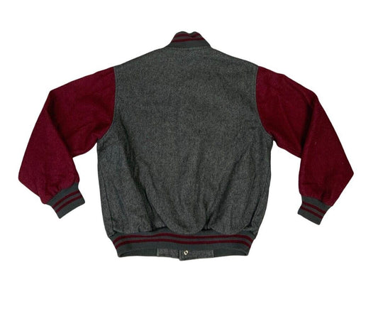 Y2K BVD WOOL GREY & BURGUNDY TWO TONE VARSITY JACKET 38 S