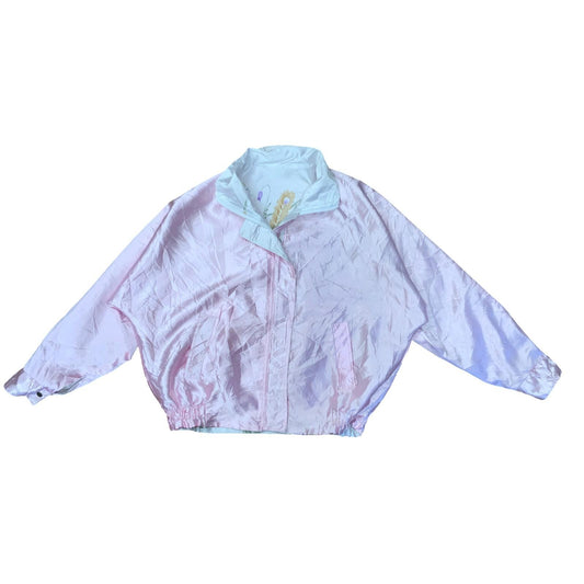 VTG 80s 90s PINK WHITE FLORAL PATTERNED REVERSIBLE BOMBER SHELL JACKET XL