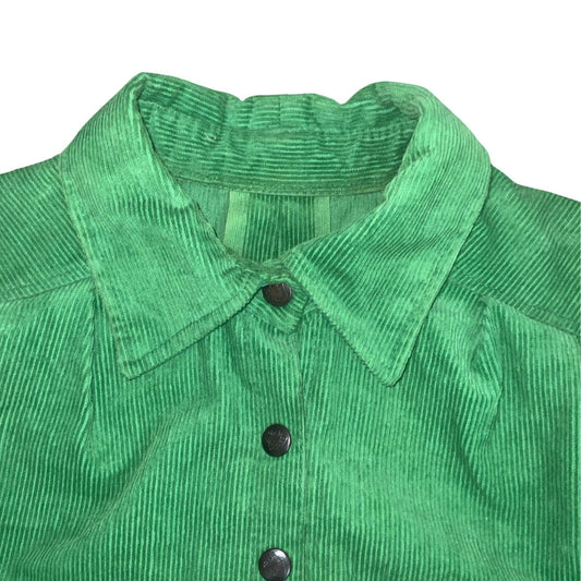 VTG 90s y2k Green Button-Up Cropped Casual Retro Corduroy Shirt Jacket UK 8/10