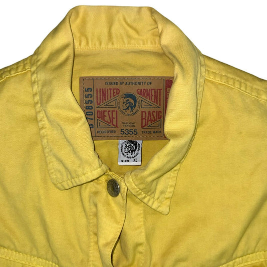 Vintage 90s 'Diesel' Yellow Biker Retro Sleeveless Denim Vest Jacket M/L UK 14