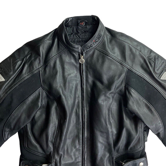 VTG 90s HEIN GERICKE STREETLINE BELTED LEATHER BIKER MOTORCYCLE JACKET CHEST 40”