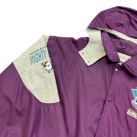 Vtg 00s Anaheim Mighty Ducks NHL Purple Grey Light Weight Sports Jacket XXL